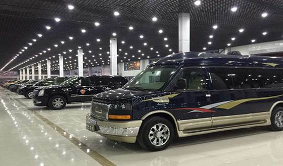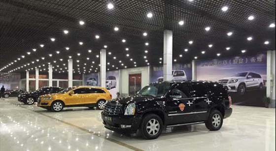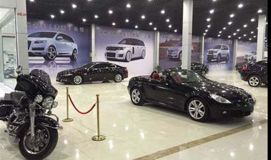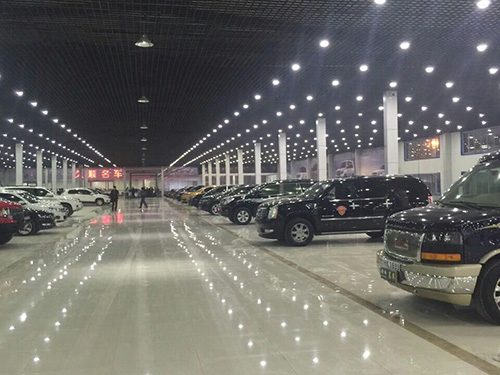 咱們有獨立的展廳。展廳的面積是6930平方,長165米,寬42米。一面19間,一間能放12臺車,一共兩面,能放456輛車??上朐蹅冋箯d有多大了。